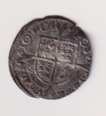 Quartered shield of arms over long cross fourchée within inner circle, legend around.