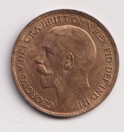 Uncrowned portrait of King George V facing left, legend around.